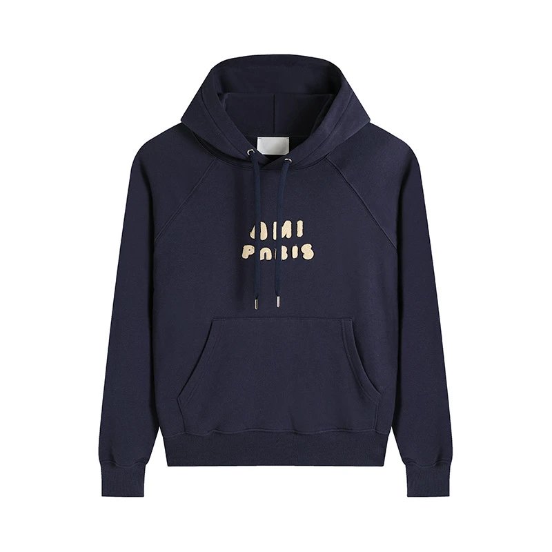 AMI PARIS Hoodie Letter Print Collection Navy Blue