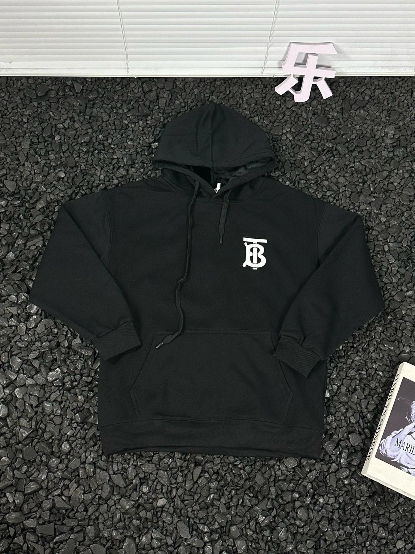 Burberry Black Printed Logo Hoodie: The deep black base paired with the printed logo design embodies understated luxury.