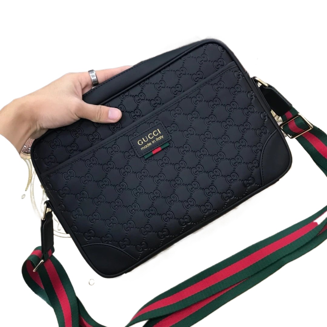 Gucci Classic GG Embossed Series Black Crossbody Bag. Iconic GG pattern exudes vintage sophistication. Versatile design suits daily commutes, leisure looks, or light business settings. Instantly elevates simple tees, blazers, or dresses, showcasing contemporary flair.