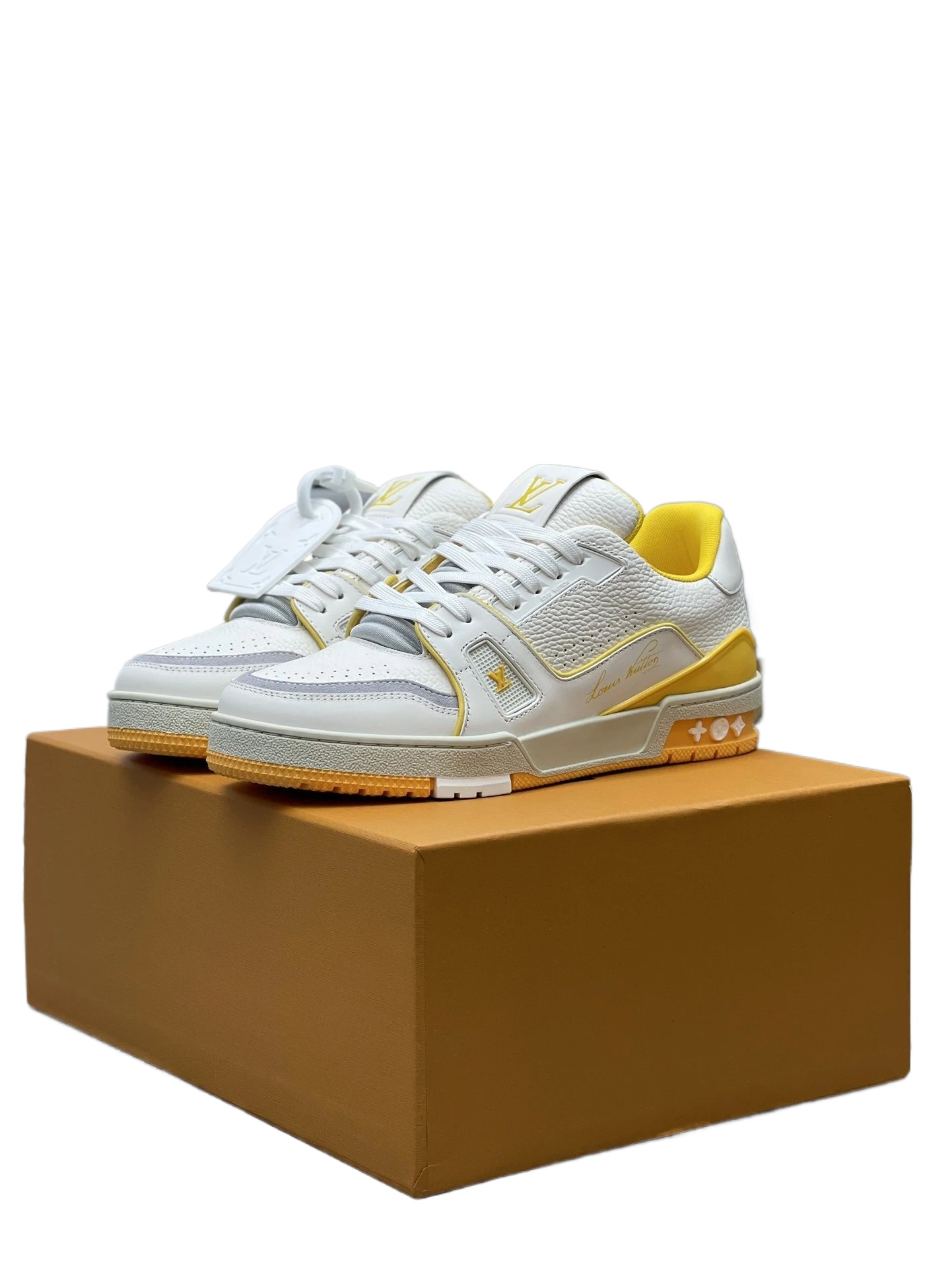 Louis Vuitton Trainer Series White and Yellow Color-Blocked Sneakers blend street-chic style with retro sophistication. Effortlessly elevate everyday looks when paired with jeans, sweatpants, or hoodies, showcasing your fashion-forward attitude.