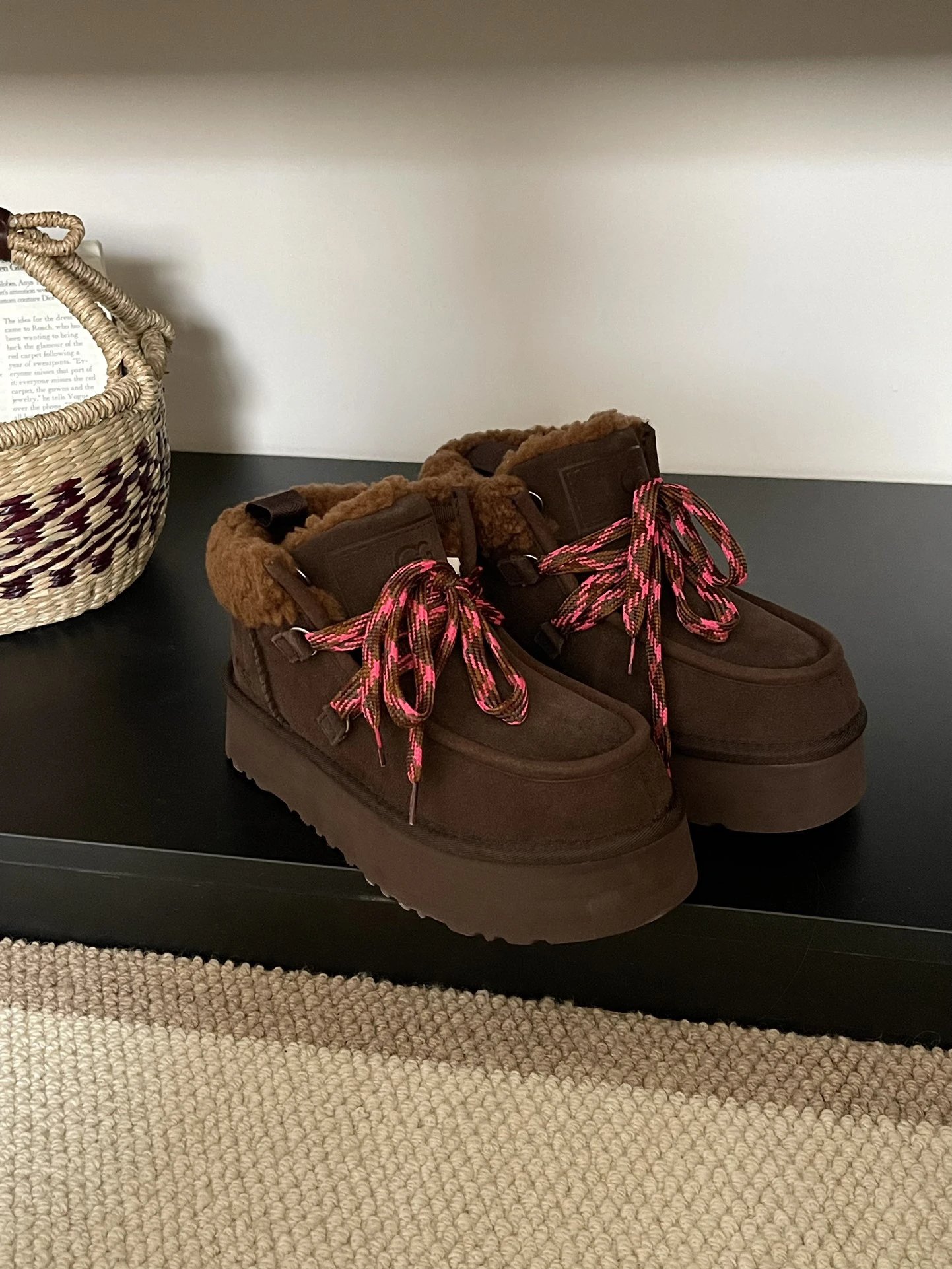 This UGG Focala lace-up slip-on features a classic design in brown—stylish and versatile for any occasion. The unique lacing not only enhances the shoe’s silhouette but also allows for customizable fit to suit your foot shape, ensuring all-day comfort. Crafted from premium materials, the upper feels soft yet durable. The sole incorporates slip-resistant technology for safer, more stable walking. Whether paired with casual wear or formal attire, these slip-ons showcase your unique taste and style.
